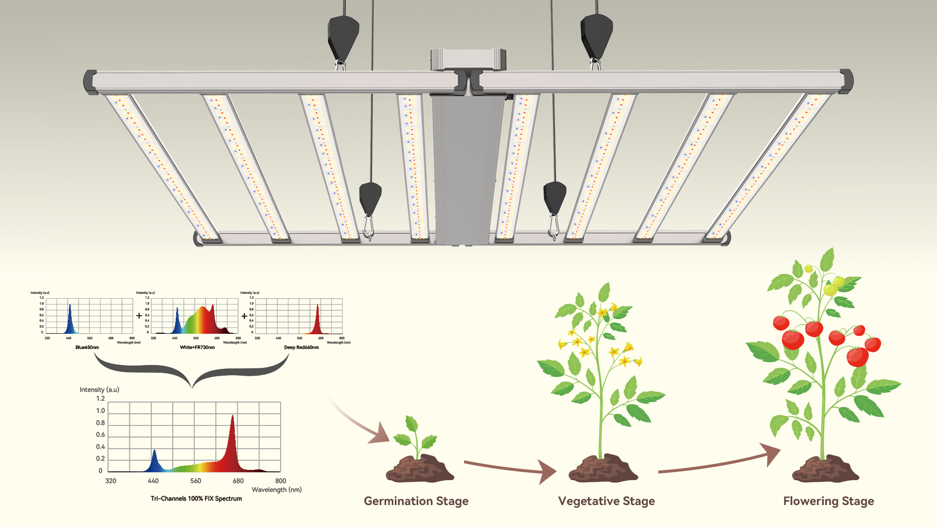 70% White+FR (380-730nm) + 100% Blue (450nm) + 50% Deep Red (660nm) |